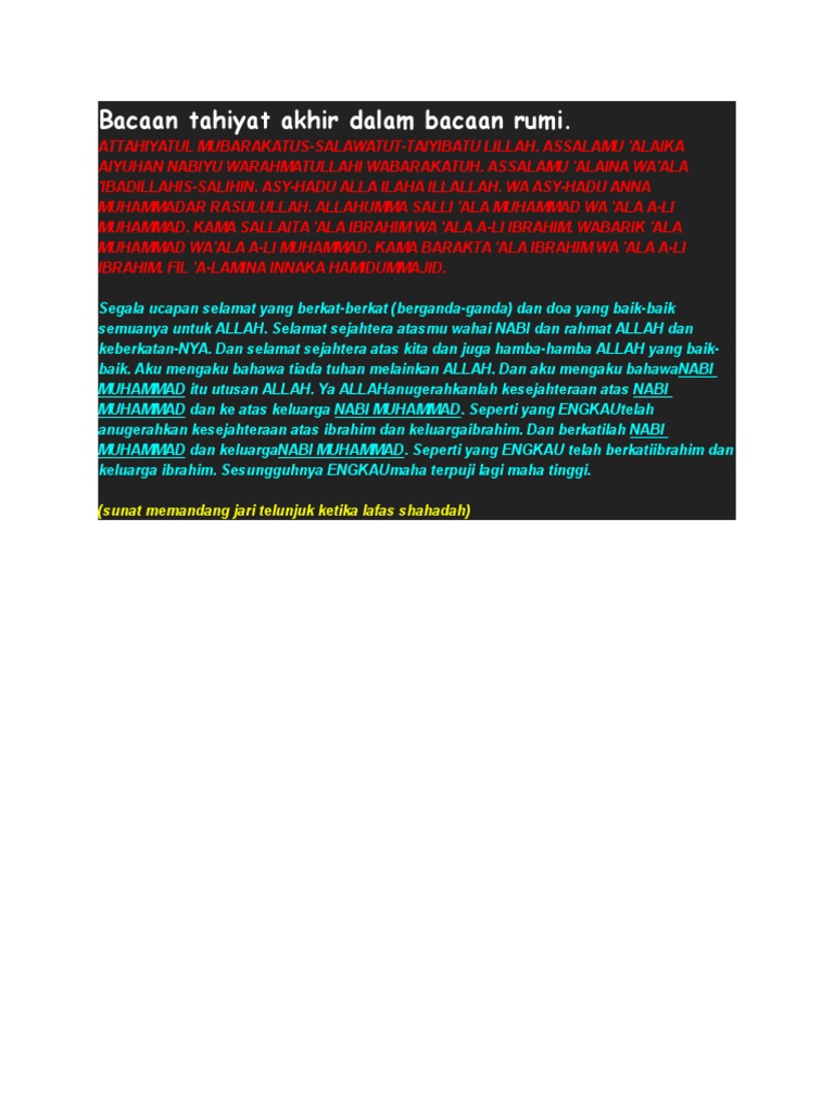 Doa tahiyat akhir (huruf latin/rumi)bacaan tahiyat akhir pada video ini saya ulang 10x. Segala penghormatan yang berkat solat yang baik adalah untuk allah. Asyhadu allaa ilaaha illallaah, waasyhadu anna muhammadan rasuulullaah. Bacaan doa tahiyat akhir ini sama dengan bacaan tahiyat awal, hanya saja ada penambahan dua bagian utama. Doa selepas tahiyyat akhir (tasyahud akhir) sebelum salam these pictures of this page are about:doa tahyat akhir rumi.