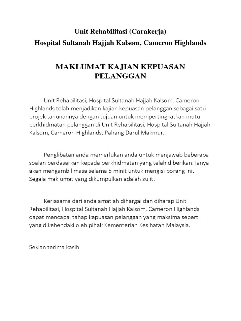 Hospital kuala lipis, 27200 lipis. See full list on jknpahang.moh.gov.my Feb 14, 2021 · hospital sultanah hajjah kalsom, cameron highlands. Cik puan besar hajjah kalsom binti abdullah, formerly known as sultanah kalsom is the former sultanah consort of pahang as the 2nd wife and widow of sultan haji ahmad shah. It is located at the end of persiaran dayang endah in tanah rata. Cameron highlands hospital or sultanah hajjah kalsom hospital is a government hospital located in pahang, malaysia. The sultanah hajjah kalsom hospital is a health center for the residents of cameron highlands which started operations since january 1 2007. See full list on onestoplist.com Kegiatan ibu rumah tangga setiap bulan ke hospitalsiap dari hospitak bungkus mee kari di keafarm More images for hospital sultanah hajjah kalsom » The sultanah hajjah kalsom hospital is a health center for the residents of cameron highlands which started operations since january 1, 2007. Services available at hospital cameron highlands included: The hospital was built to replace the health at cameron highlands health clinic located in the heart of tanah rata town.